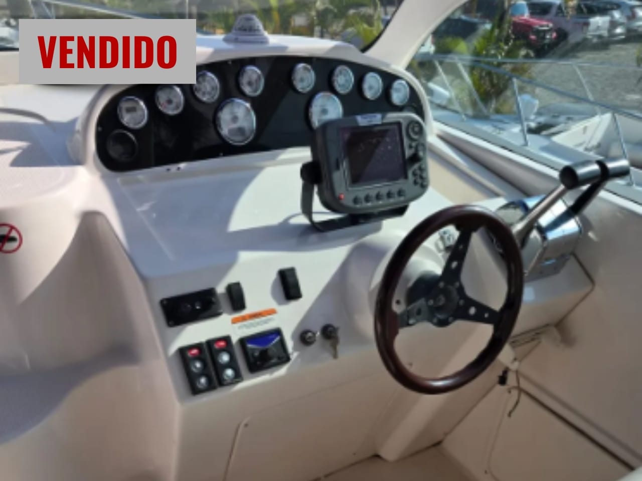 Equipada com itens de conforto e conveniência, esta unidade conta com GPS, sonda, rádio VHF, TV, capota de proteção, micro-ondas e carreta rodoencalhe, oferecendo praticidade e funcionalidade para o dia a dia no mar.
