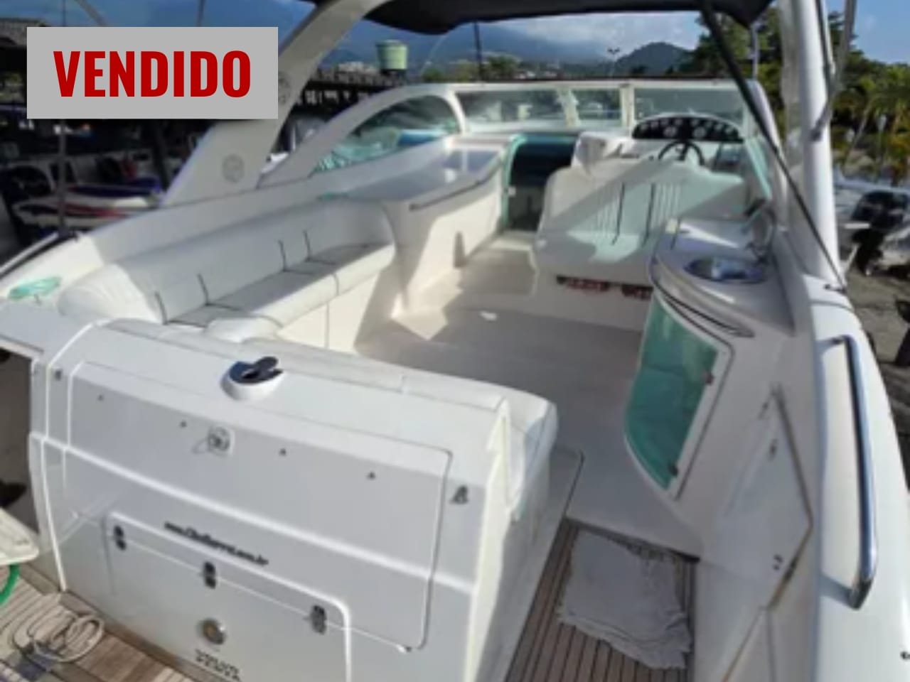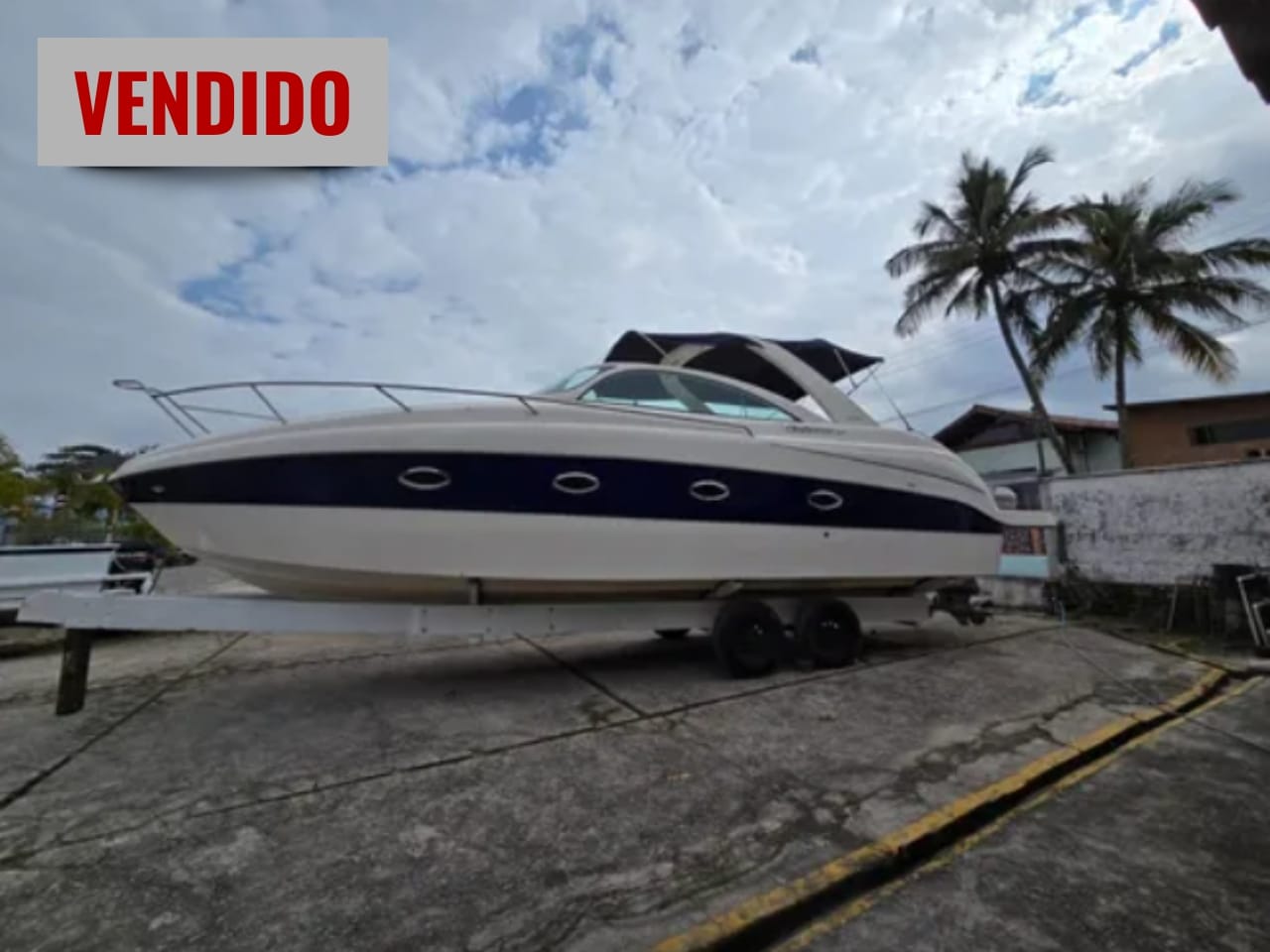 À venda: Cimitarra 340, ano 2008, uma das lanchas mais consagradas da náutica brasileira, com 10,35 metros (34 pés), equipada com dois motores Volvo Penta D3 190HP Diesel, garantindo ótimo desempenho, segurança e economia de combustível.