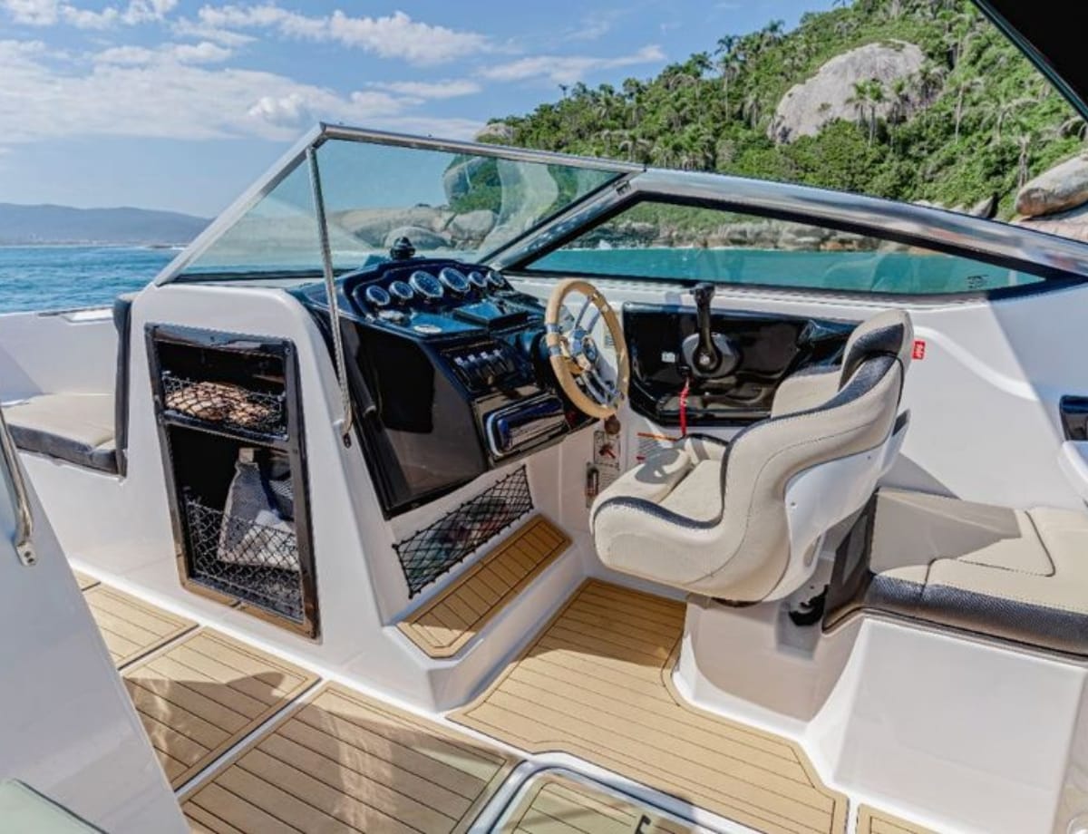 Com linhas esportivas e acabamento de alto padrão, a Focker 255 GTO oferece um layout inteligente com sofá em U rebatível, ampla área de convivência e detalhes que priorizam a ergonomia e o lazer a bordo. Seu design moderno e estrutura robusta garantem segurança e conforto para toda a família.
