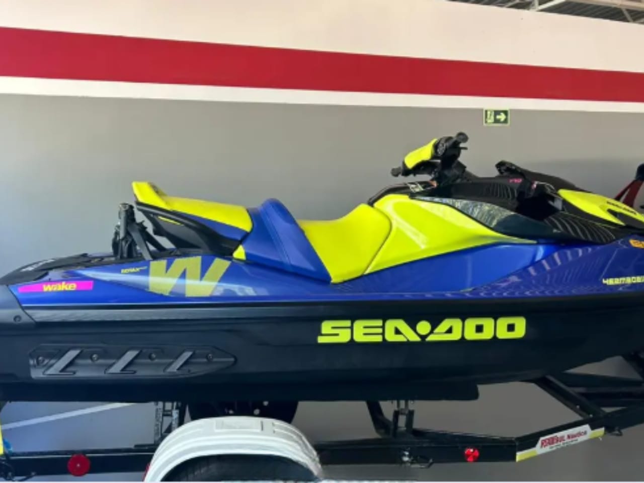À venda: Sea-Doo Wake 170 2021, jet ski de alta performance desenvolvido especialmente para esportes aquáticos. Equipado com motor Rotax 1630 ACE de 170 HP, oferece potência, estabilidade e controle superiores, ideal para quem busca diversão com desempenho e segurança.
