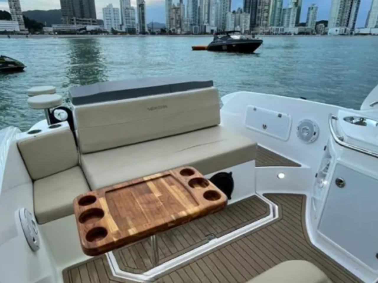 Ventura Marine V350 HT Premium, ano 2025, lancha moderna e extremamente completa, com 35 pés e polpa alongada para aproximadamente 38 pés, oferecendo mais espaço, conforto e estabilidade. Equipada com dois motores Volvo Penta a gasolina de 270 HP cada, revisados e com apenas 195 horas, garante excelente desempenho aliado a navegação suave e segura.